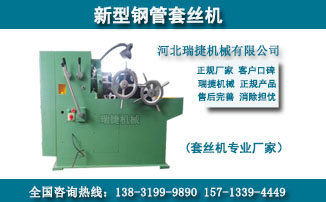 瑞捷套絲機設備采用液壓裝置成功解決勞動強度大,效率低,且無定位裝置,絲扣長短難控制等弊端,可一次型完成螺紋加工成型且螺紋牙形飽滿光滑。套絲機的主要部件及結構是由套絲機床的傳動系統,支架系統,切線板牙頭,定位裝置及液壓系統組成,工作時只要將工件裝入夾鉗,其余程序將自動完成,操作簡單,通俗易懂,瑞捷套絲機廠家直銷,質量有保證,減少不必要的中間環節,為客戶帶來實實在在的優惠政策,歡迎新老客戶洽談合作事宜和來電咨詢.